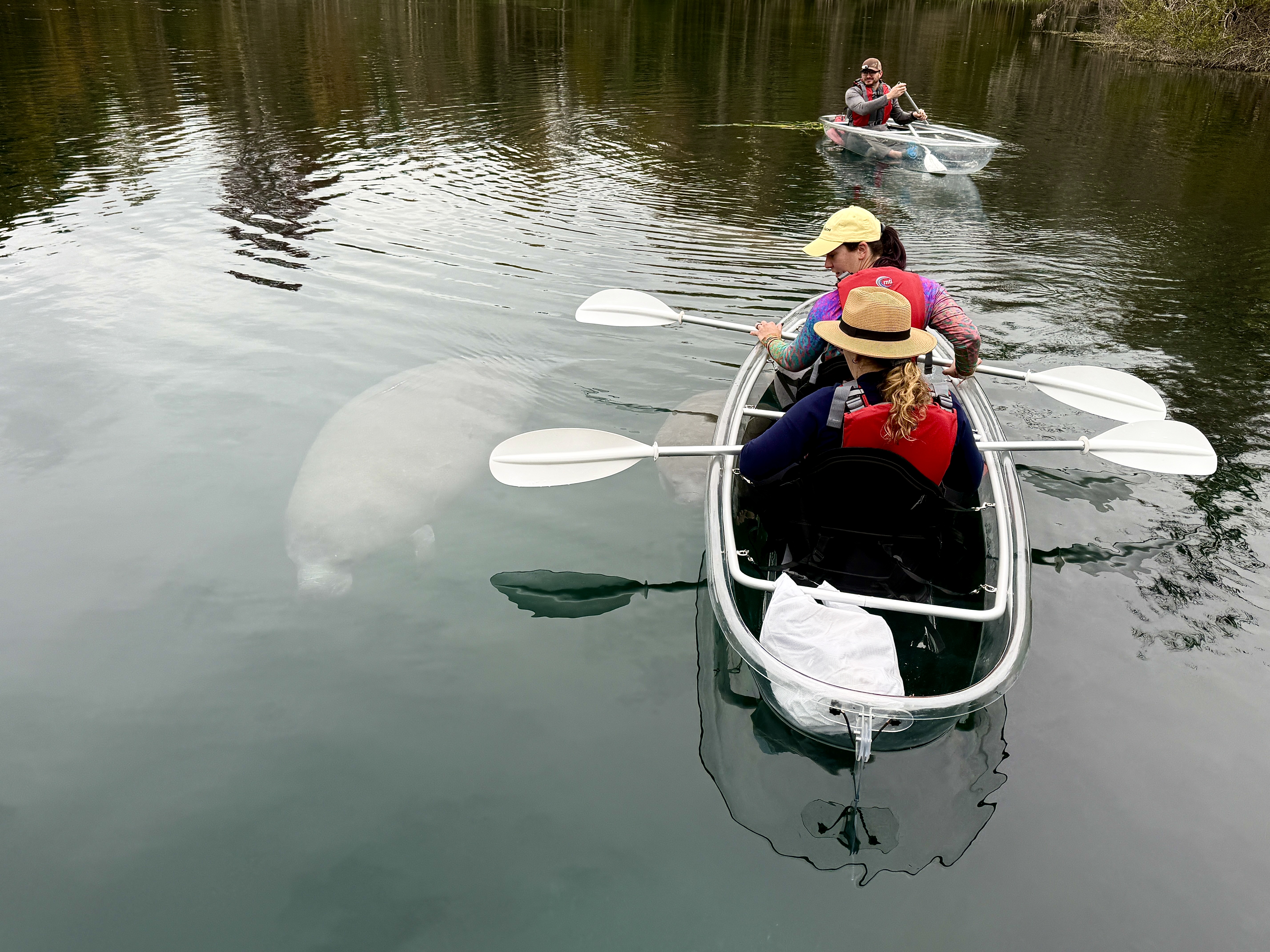 These are areas you’ll want to have a kayak, canoe or paddle board. Choose to rent or book a guide (which is what we did!) for a local expert’s guidance. I highly recommend renting a clear kayak. I had a difficult time seeing straight down the bottom of my kayak with the amount of water that collected inside (blame it on my experience level). But, seeing through the sides is what makes it a must! Several manatees approached from that direction and we caught up close views of their squishy faces.